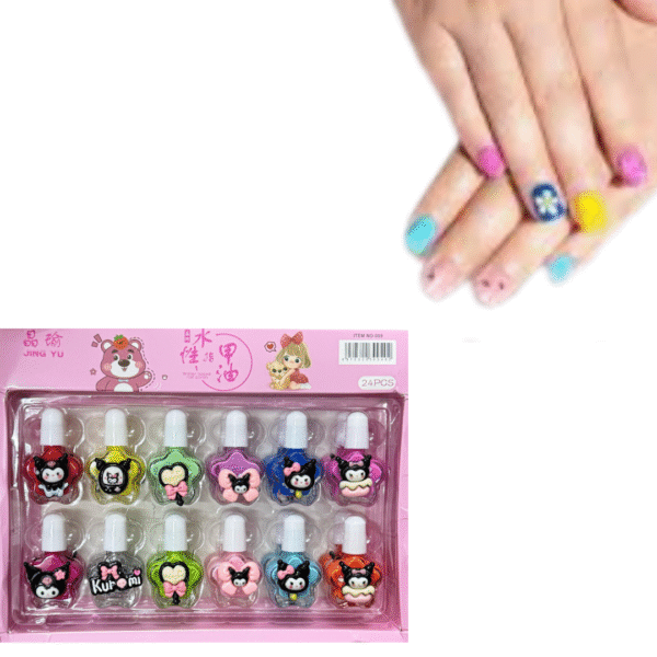 Supply Smiles Kids Nail Polish Set | Cute Cartoon Character Non-Toxic Nail Colors (12 Shades)