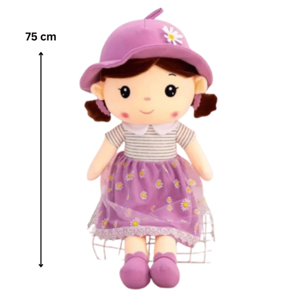 Supply Smiles 75 cm Soft Doll with Purple Dress & Hat | Plush Girl Toy Gift for Kids