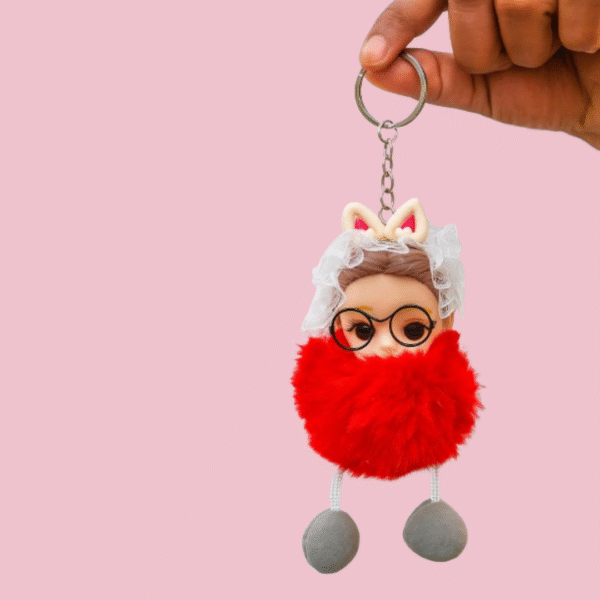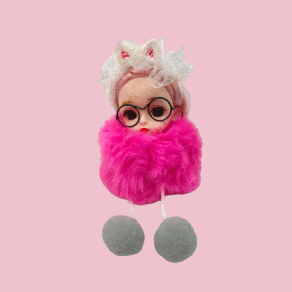 Supply Smiles Cute Doll Keychain | Fluffy Fur Charm with Glasses & Bow | Bag & Car Hanging Key Ring