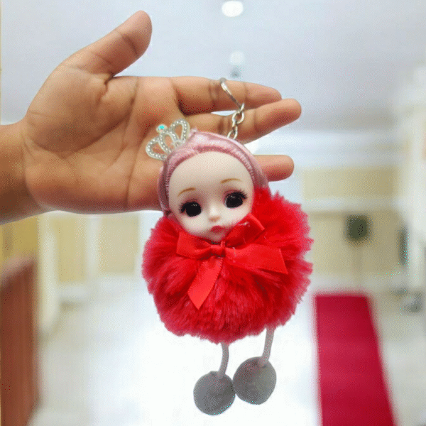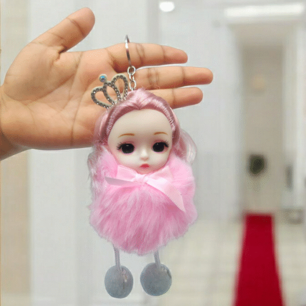 Supply Smiles Princess Doll Keychain | White Fur Ball Charm with Crown & Bow | Cute Bag & Car Hanging Accessory