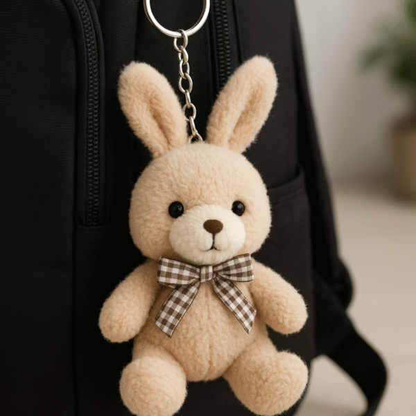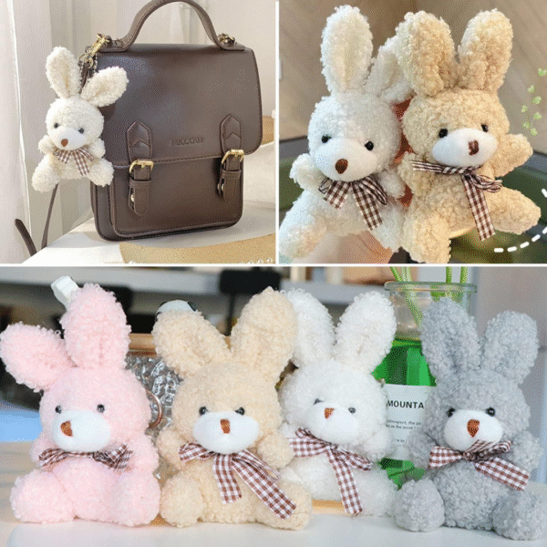 Supply Smiles Bunny Plush Keychain | Cute Soft Toy Doll with Bow | Bag, Purse & Car Hanging Accessory