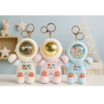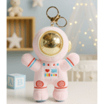 This adorable 15 CM astronaut plush features a unique bead-filled helmet, soft cuddly fabric, and a golden keychain hook—perfect for kids, bag charms, or as a fun gift for space lovers.